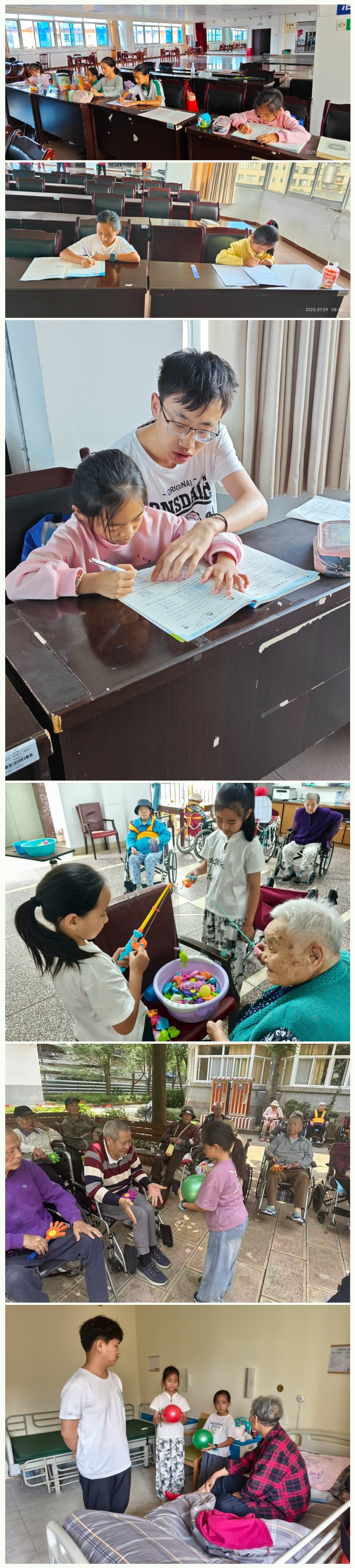 暑假即将结束,孩子们也将回归校园,敬老院留下了她们学习的身影,留下了她们陪伴长者的欢声笑语。